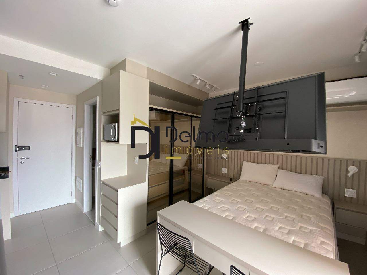 Com 26m² muito bem distribuídos, o imóvel integra quarto, cozinha e sala em um ambiente único, funcional e inteligente, além de contar com um banheiro aconchegante e uma varanda charmosa, ideal para relaxar após um dia intenso.