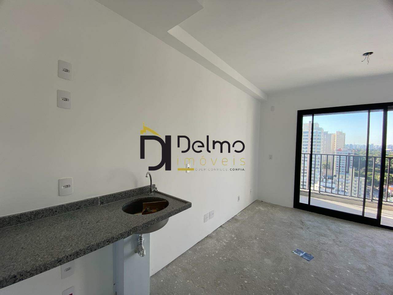 Com 22,96m² bem distribuídos, o imóvel conta com um ambiente integrado que une quarto e cozinha de forma prática, além de um banheiro e uma varanda que garante boa iluminação natural e ventilação.